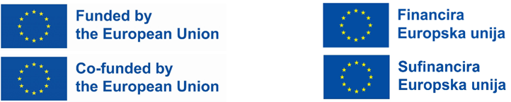 „Financirano sredstvima Europske unije. Iznesena mišljenja i stavovi odražavaju isključivo stav autora i ne moraju se podudarati sa stavovima Europske unije ili [naziv tijela koje dodjeljuje bespovratna sredstva]. Ni Europska unija ni [tijelo koje dodjeljuje bespovratna sredstva] ne mogu se smatrati odgovornima za njih.”